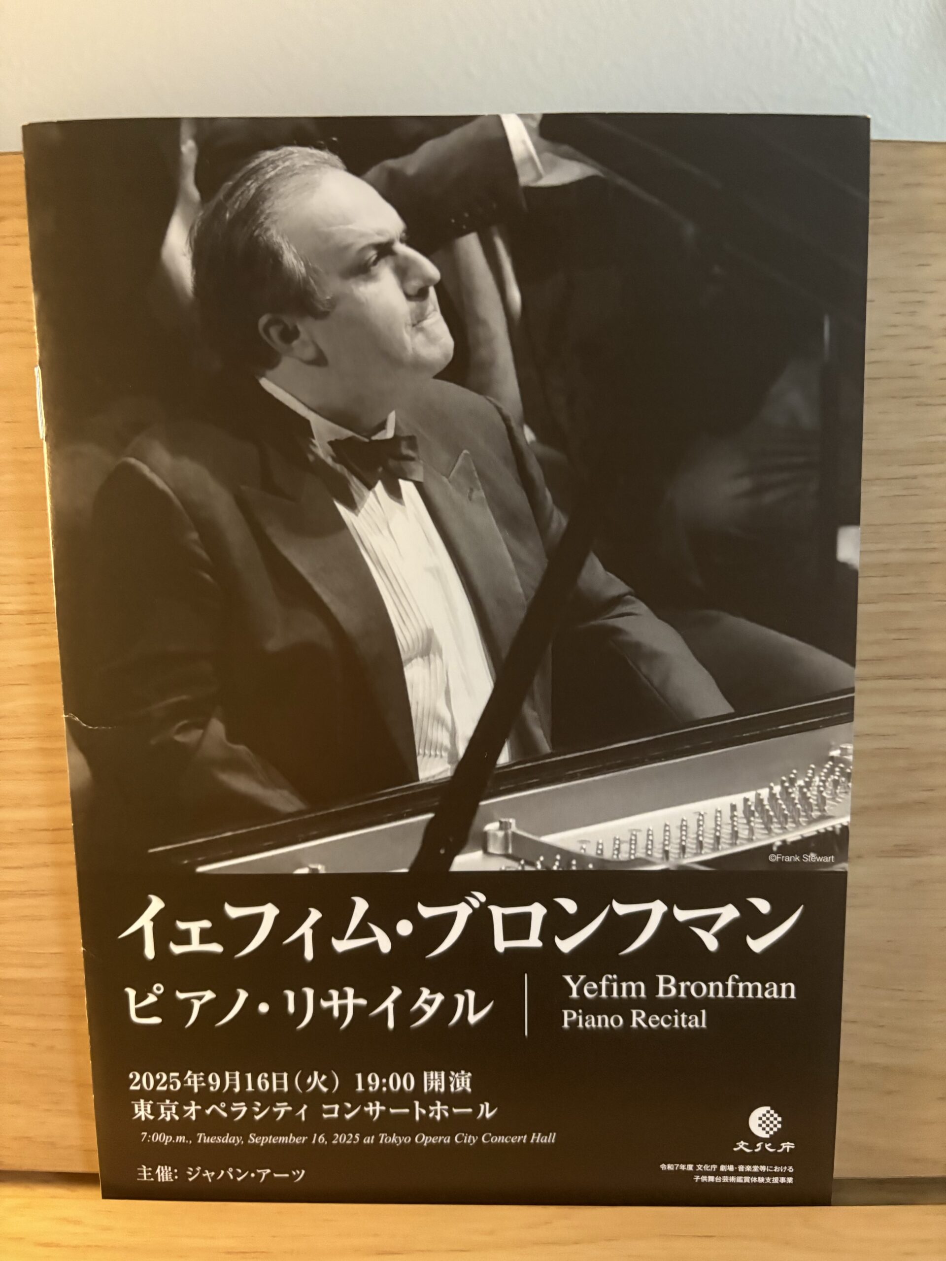 9月16日(火)東京オペラシティ コンサートホールにて行われた、イェフィム・ブロンフマン(ピアノ)のソロ公演に行ってきました!