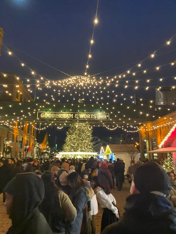 特におすすめなのが冬。毎年11月〜12月にかけて「Toronto Christmas Market」が開催されます。歴史的なレンガ造りの建物がイルミネーションで彩られて、ヨーロッパのクリスマスマーケットのような雰囲気に。屋台がずらっと並んで、お酒の種類で紹介したMulled Wine(ホットワイン)を片手にぶらぶらするのが最高です。